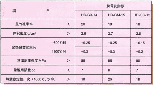 耐磨耐火浇注料的理化指标